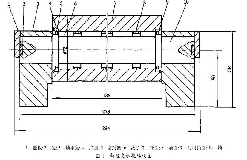 新型支承輥在軋輥的尺寸允許條件下,采用滾針及多排圓柱滾子作徑向支承,采用單列球軸承作為軸向定位有利支承輥的強度和剛性的提高。
